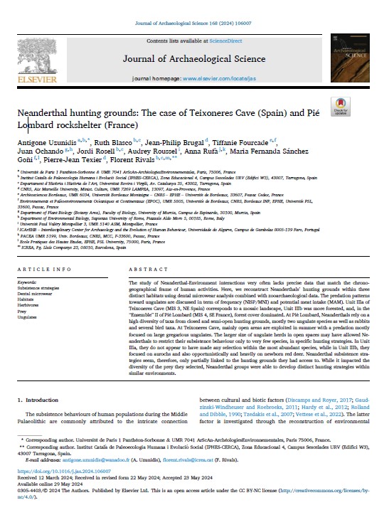 Antigone Uzunidis, Ruth Blasco, Jean-Philip Brugal, Tiffanie Fourcade, Juan Ochando, Jordi Rosell, Audrey Roussel, Anna Rufà, Maria Fernanda Sánchez Goñi, Pierre-Jean Texier, Florent Rivals